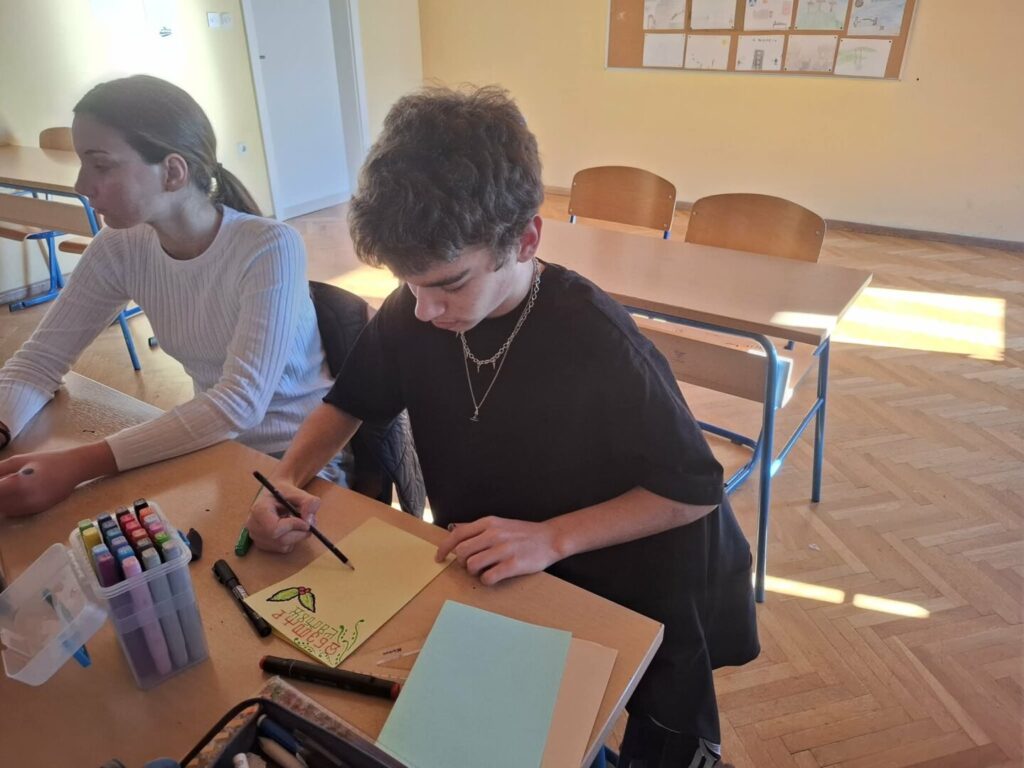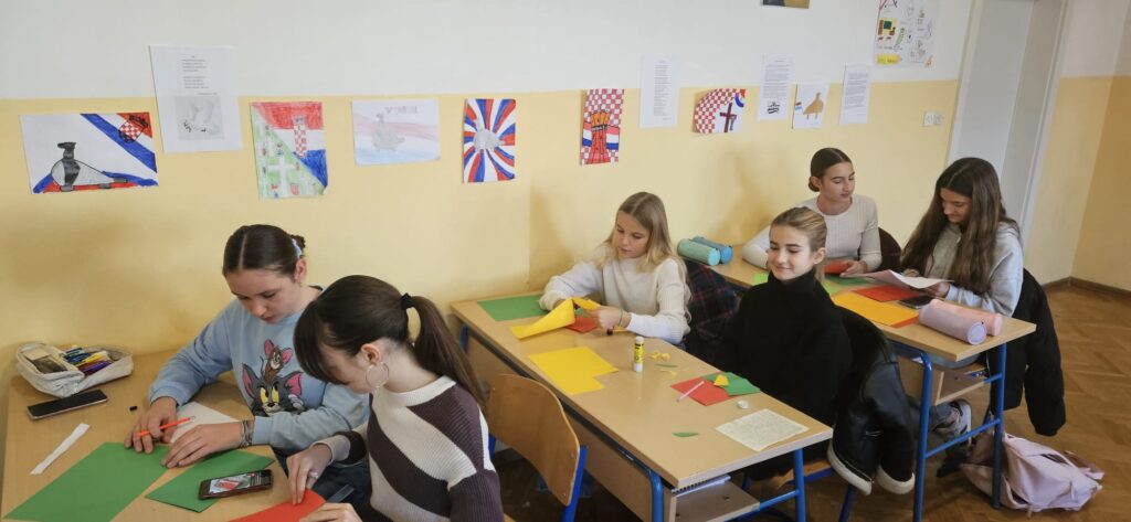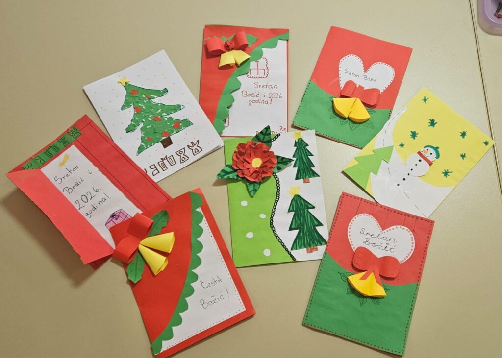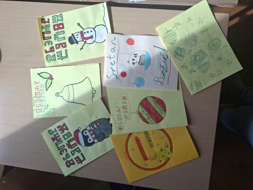 Ususret Božiću učenici 7. i 8. razreda pod vodstvom učiteljica Hrvatskoga jezika izrađivali su čestitke s prigodnim motivima te ih ispisali naučenom glagoljicom.