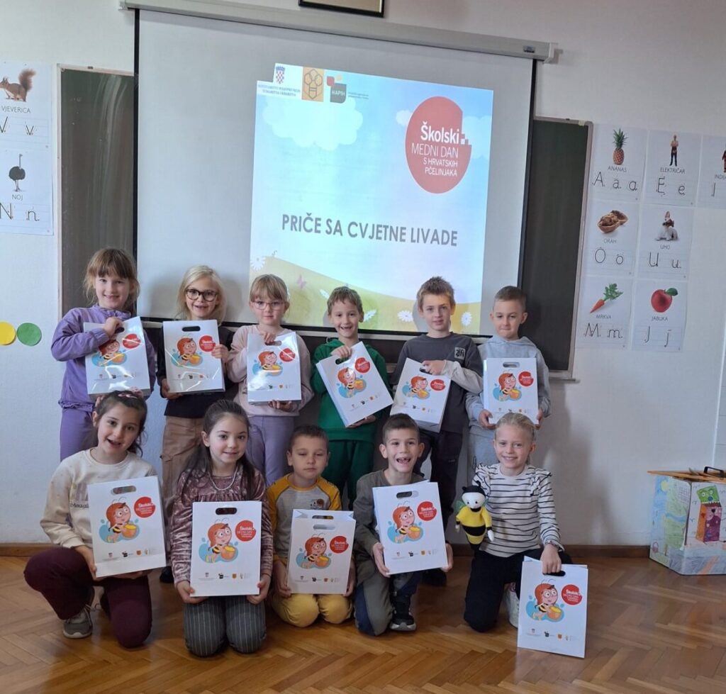 Ponedjeljak, 8. prosinca, kod naših prvašića je bio posebno sladak jer su obilježili ”Školski medni dan s hrvatskih pčelinjaka”. Učenici su pogledali prigodnu prezentaciju “Priče s cvjetne livade”, upoznali se s pojmovima: matica, trut, radilica, saće, košnica, saznali su čime se pčele hrane te upoznali put od cvijeta do meda. Doznali su koliko pčela tijekom života proizvede meda te koje su dobrobiti meda za naše zdravlje. Na kraju su učenicima podijeljeni poklon-paketići s teglicom meda i slikovnicom.
