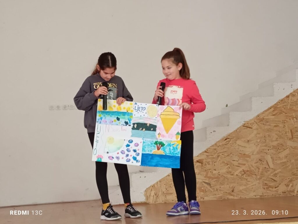 Učenici razredne nastave svoje su glazbene, pjevačke, likovne, sportske i komičarske talente predstavili u školskoj dvorani, pred okupljenim vršnjacima. Atmosfera je bila razigrana i poticajna, a svaki je učenik dobio priliku pokazati ono što ga veseli i u čemu je poseban.