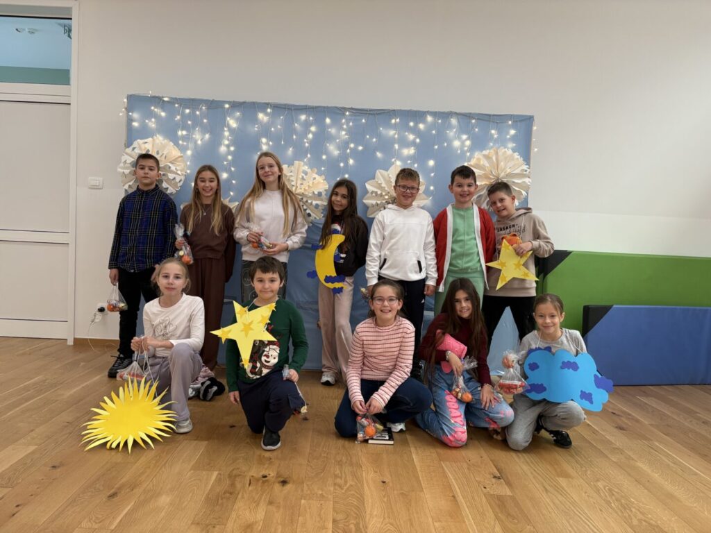 Tom prigodom su naše najmlađe sumještane počastili s dva igrokaza. Najprije su trećaši izveli igrokaz “Božićna priča” kojim su vrtićane podsjetili da se uvijek isplati biti dobar jer dobra djela i ponašanje uvijek budu nagrađeni. Zatim su šestaši odglumili poznatu dječju slikovnicu “Maca papučarica” te upozorili vrtićane da moraju čuvati i paziti svoje papučice jer ako ostanu bez njih noge će im se smrznuti.
