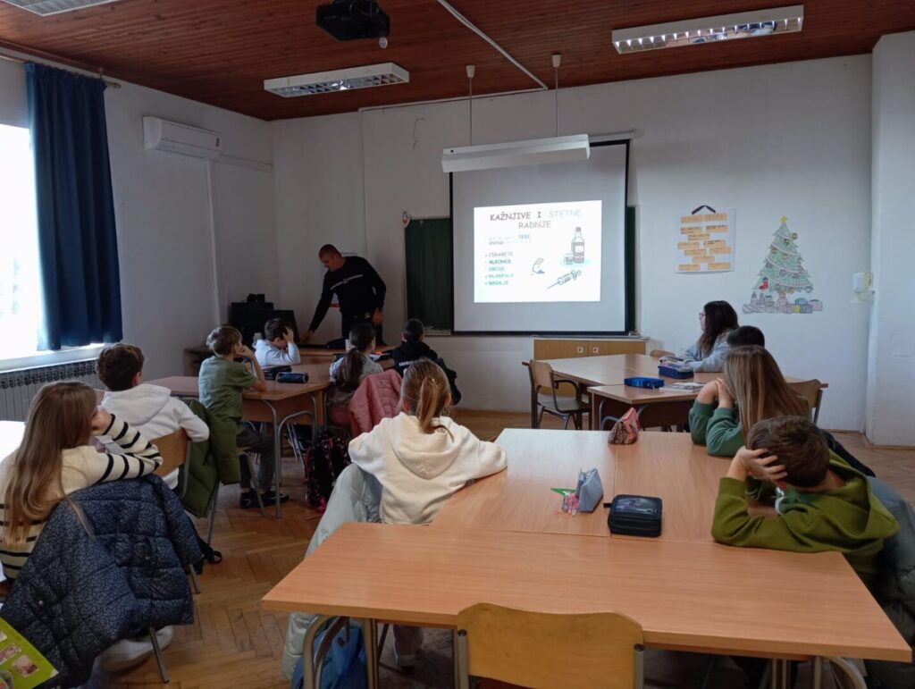Učenici 4. razreda u sklopu projekta MAH -1, upoznali su se s osnovnim pojmovima vezanima uz sigurnost i zdrave navike, dok su učenici 8. razreda kroz razgovor i primjere iz prakse dodatno educirani o rizičnim ponašanjima karakterističnim za njihovu dob te o zakonskim posljedicama neodgovornih postupaka.