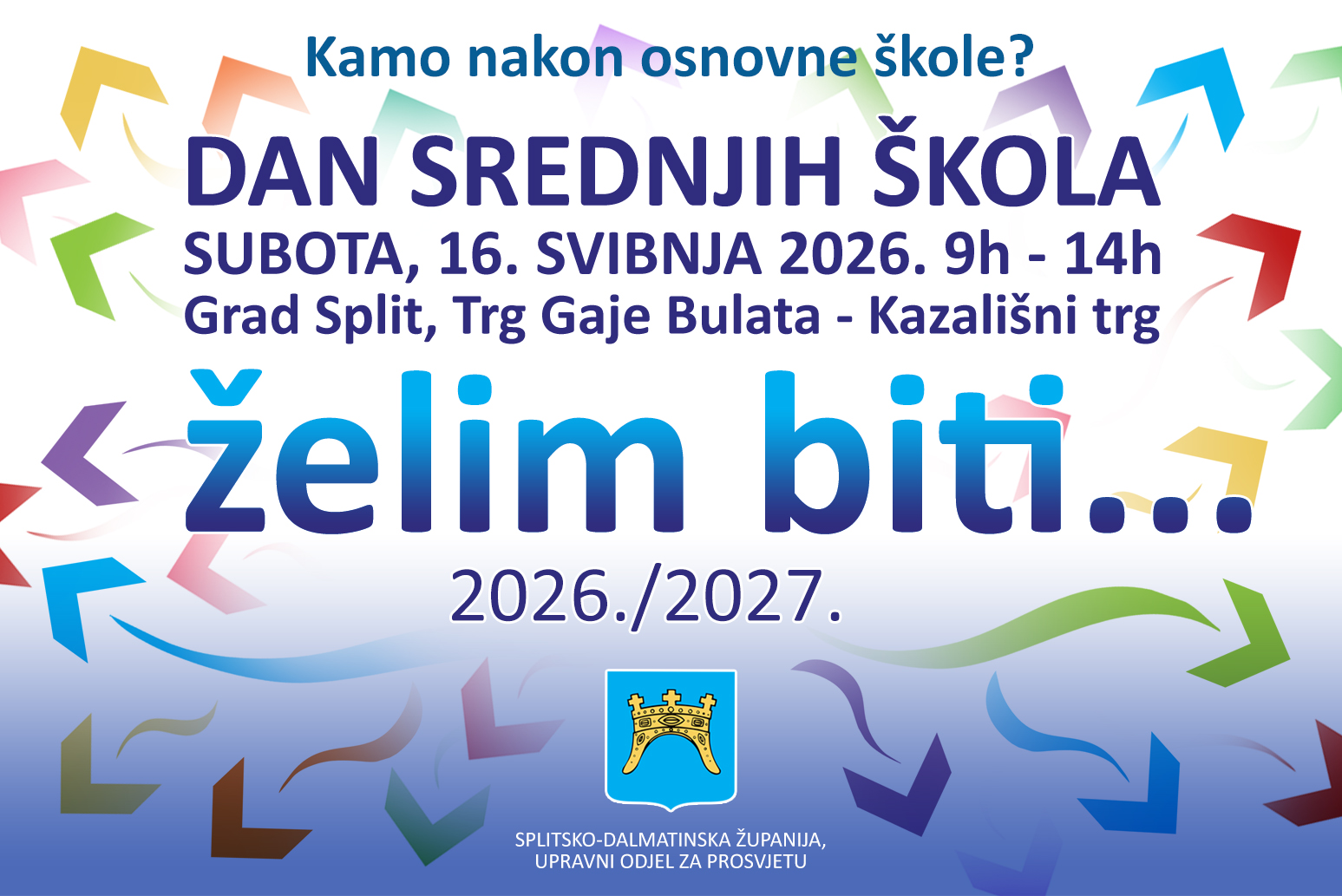 Splitsko-dalmatinska županija, Upravni odjel za prosvjetu, organizira manifestaciju „Dan srednjih škola Splitsko-dalmatinske županije“, namijenjenu prvenstveno učenicima osmih razreda osnovnih škola i njihovim roditeljima.