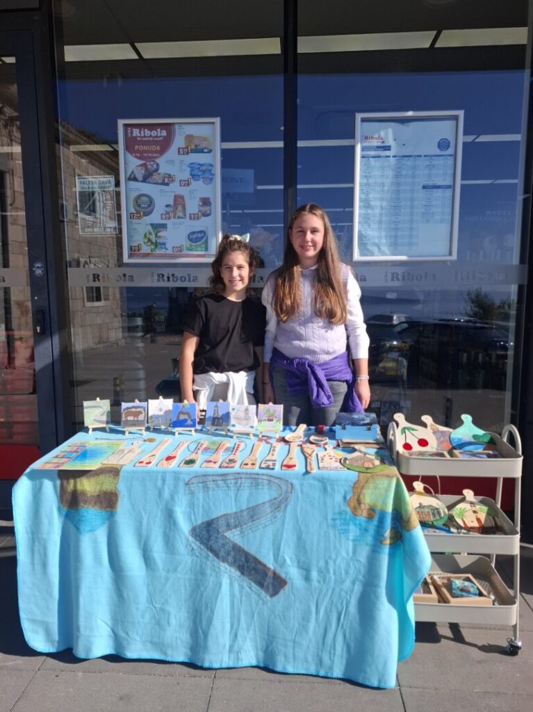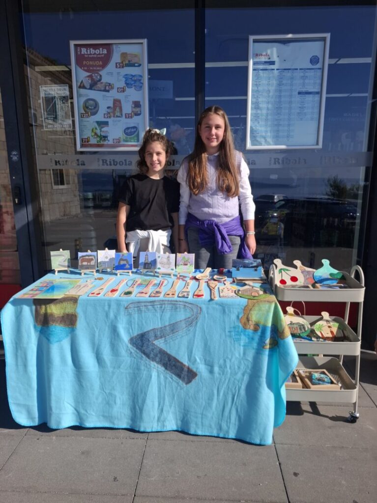 Zajedno s knjižničarkom Gracijom Glavičić učenici su pravili slike na stalcima, oslikali drvene kašike i daščice. Motivi su bili raznoliki: crkve u Brelima, Napoleonova cesta, Šakan, višnje, masline, more. Prodavali su ispred trgovine Ribola tri puta (25.9., 10.10. i 13.10. 2025.). Prikupili su ukupno 410 eura donacija. Tim novcem kupit će se stripovi, slikovnice i knjige za slobodno vrijeme.