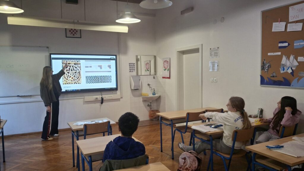 Učenici 6. razreda danas su tijekom nastave Povijesti imali zanimljivo predavanje i radionicu koje je održala Anita Zelić Tomaš na temu „Hrvatski pleter u spomeničkoj baštini“. Tijekom predavanja učenici su se upoznali sa starohrvatskom arhitekturom, značenjem i simbolikom hrvatskog pletera te njegovom povijesnom ulogom u kulturnoj baštini. Kroz primjere s povijesnih spomenika profesorica je objasnila gdje se pleter pojavljuje, kada se počeo koristiti i zašto je važan za razumijevanje hrvatske povijesti i umjetnosti, potičući učenike da razviju interes i pozitivan odnos prema očuvanju i valorizaciji kulturne baštine.