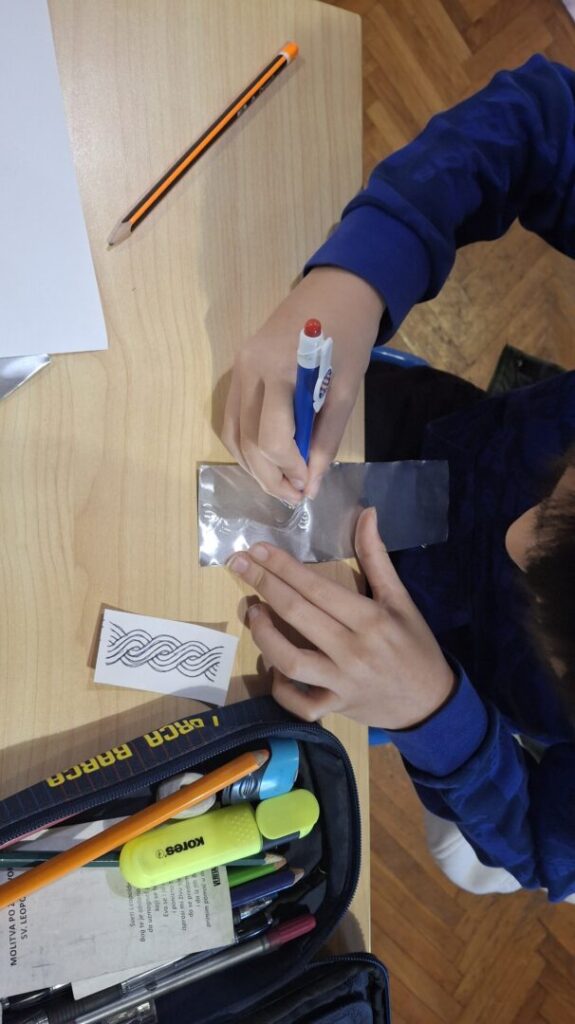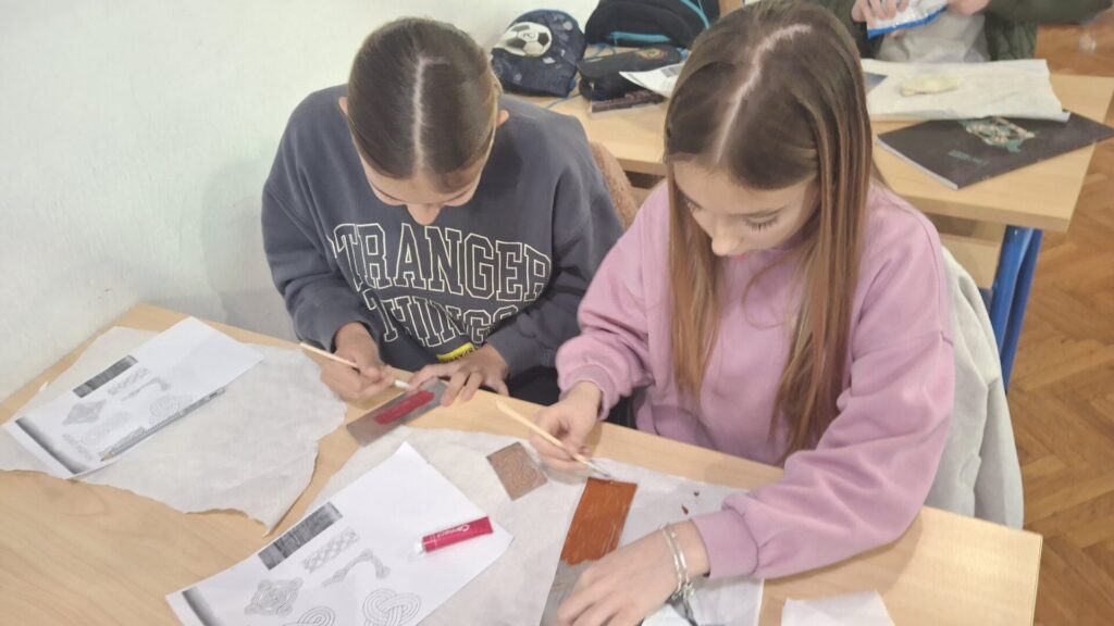U praktičnom dijelu radionice učenici su uz pomoć glinemola i aluminijskih pločica izrađivali vlastite motive pletera, vježbajući preciznost i kreativno izražavanje. Tijekom izrade učenici su povezivali povijesne sadržaje s praktičnim radom, prepoznavali motive pletera na primjerima kulturnih spomenika i izrađivali vlastite interpretacije koristeći različite likovne tehnike, čime su postigli konkretne ishode učenja i razvili dublje razumijevanje i poštovanje prema hrvatskoj kulturnoj baštini.
