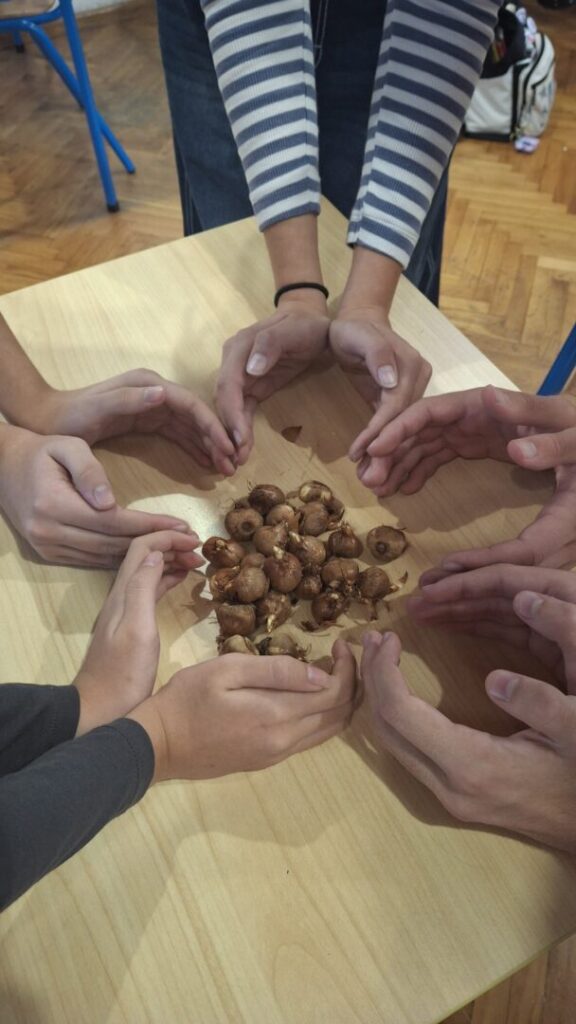 Danas su učenici posadili lukovice žutog šafrana u školskom dvorištu. Cvjetovi koji bi trebali niknuti krajem siječnja, simboliziraju život i sjećanje na milijune djece koja su izgubila svoje živote u Drugom svjetskom ratu.