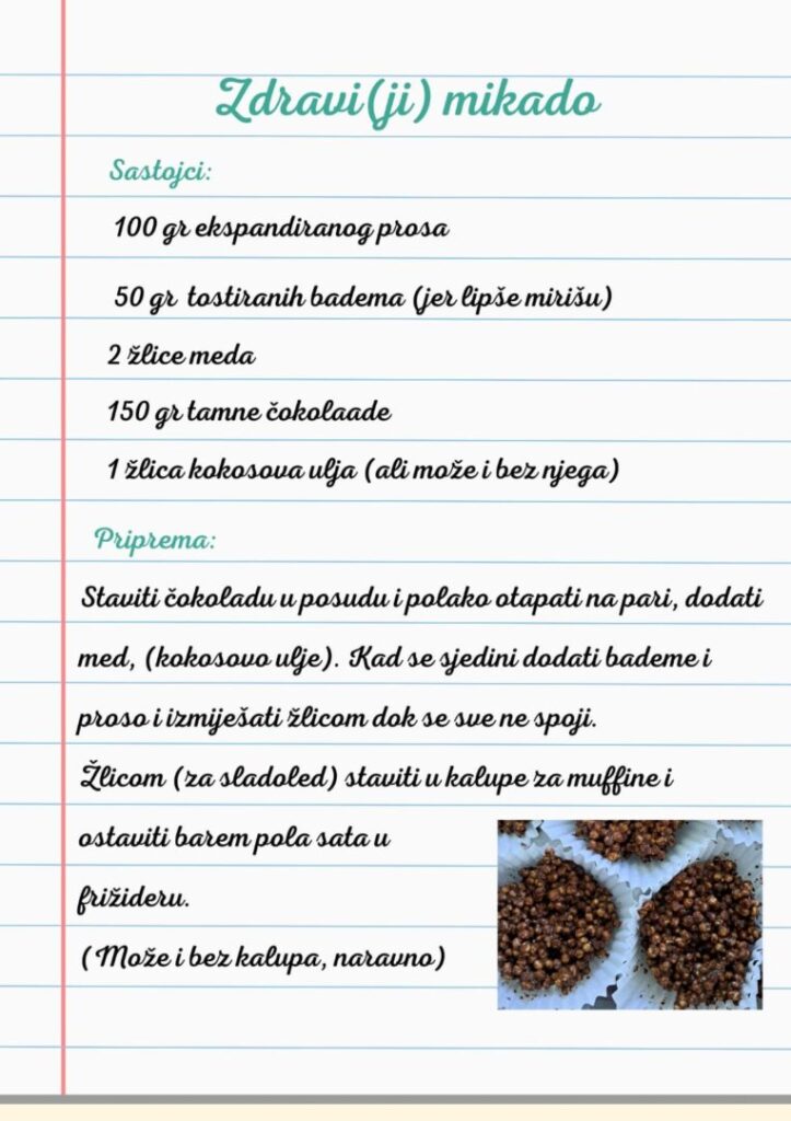 Učenici su zaista uživali u zdravoj poslastici, a mi se nadamo da ćemo se i sljedeće godine opet priključiti akciji i pokazati kako je zdravo živjeti zdravo. Zdraviji Mikado je poslužen za vrijeme školske marende u kuhinji.